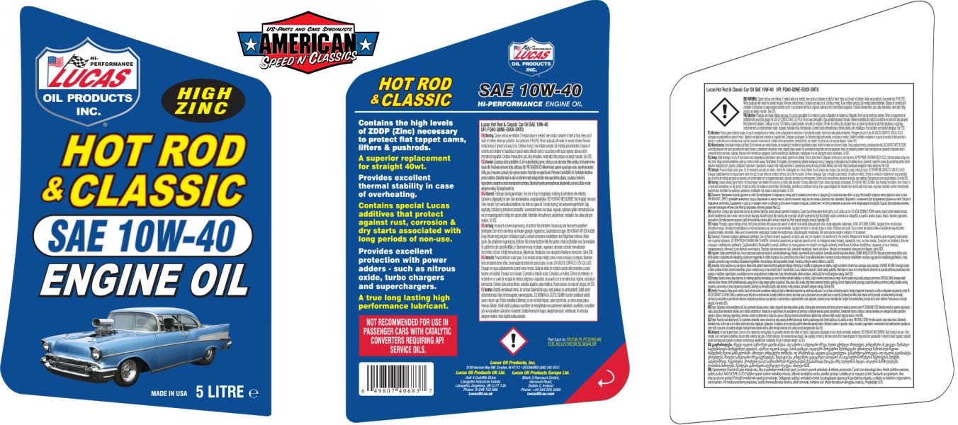 Motoröl SAE 10W-40 Lucas Oil Hot Rod & Classic Zink